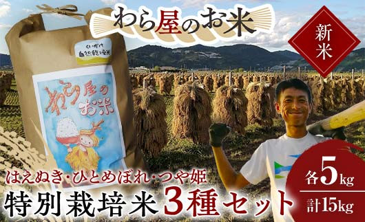 わら屋が作る自然乾燥のおいしいお米 【令和7年産 新米 先行予約】 【わら屋のお米】 特別栽培米3種セット 「はえぬき・ひとめぼれ・つや姫」 各5kg (計15kg) 《令和7年10月下旬~発送》 『おがわ藁農園』 米 白米 精米 ご飯 農家直送 セット 食べ比べ 山形県 南陽市 [2170-R7]