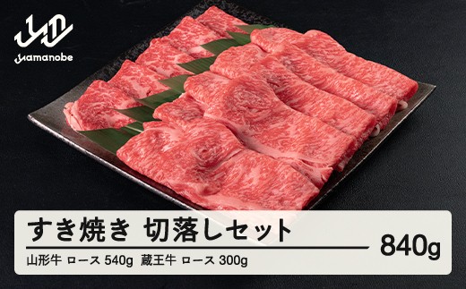 A4-A5ランクの山形牛と蔵王牛を食べ比べでご賞味ください。 山形牛 ロース 540g 蔵王牛 ロース 300g すき焼き 切落しセット計840g 冷凍 高橋畜産 tc-gnzys840