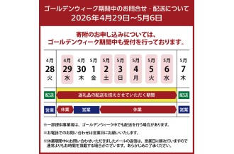 発送後すぐにお品物をお受取りいただけない場合、返礼品が劣化する恐れがあります。