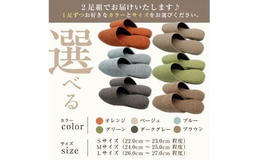 「株式会社後藤」によるスリッパです。 高級ソファの生地としても使われている厚手のファブリックを贅沢に使用し、伝統的な吊り込み技法により熟練工が手間をかけて作製した同社の代表作です。 つま先部分を熱処理により高くしてあるため、足入れがスムーズで型崩れしにくい作りになっています。 また、ヒール部分に厚みをもたせているためクッション性に優れ、さらに裏面のかかと部には画期的なすべり止めを付けました。 「おもてなしの心」をもって、特に来客用にお使いいただくのに最適です。 新色でブラウン系が追加となりました。 ※ご希望の2足分のサイズとカラーを備考欄へご記入下さい。