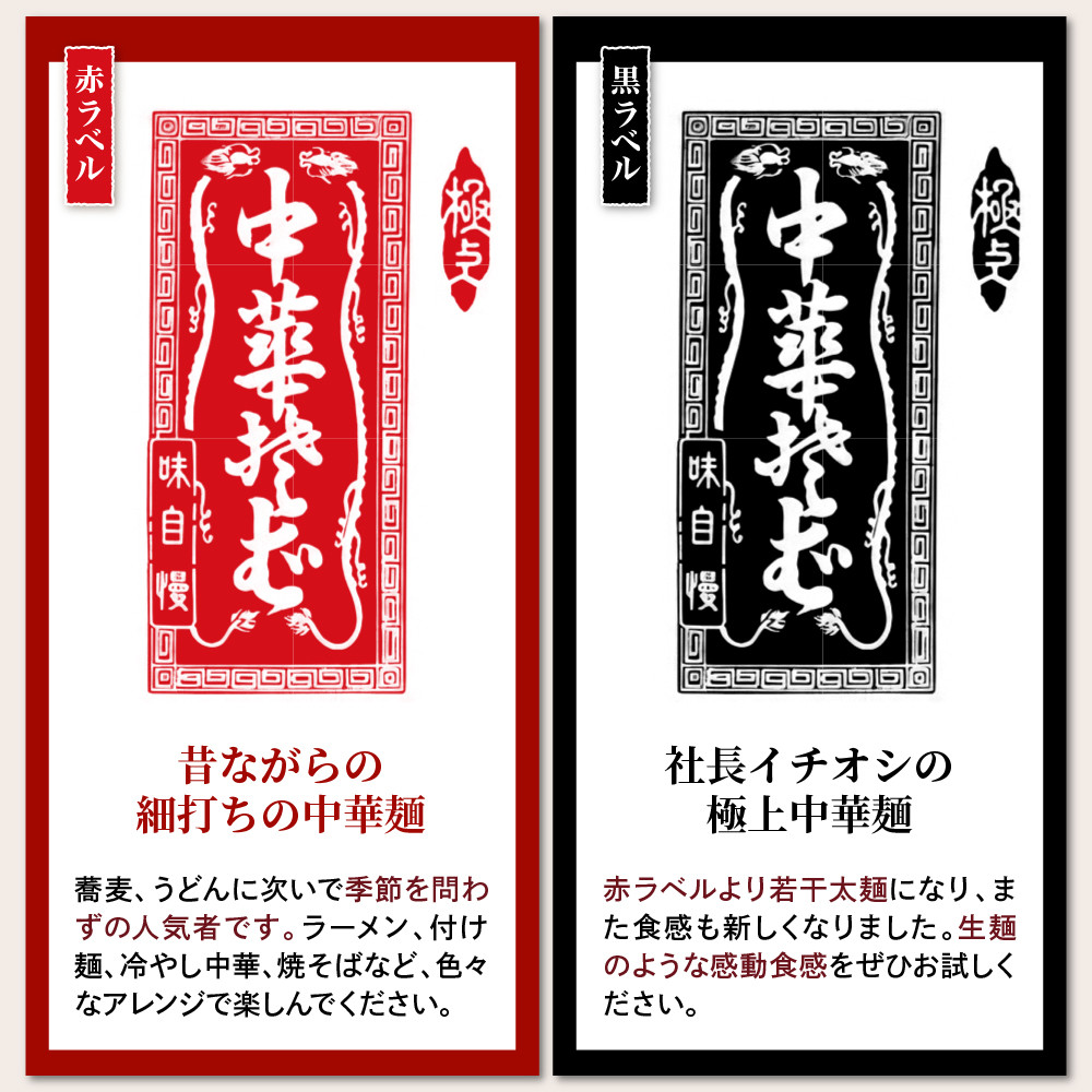 昔ながらの細打ちの中華麺「赤ラベル」! 当代イチオシの極上中華麺「黒ラベル」!