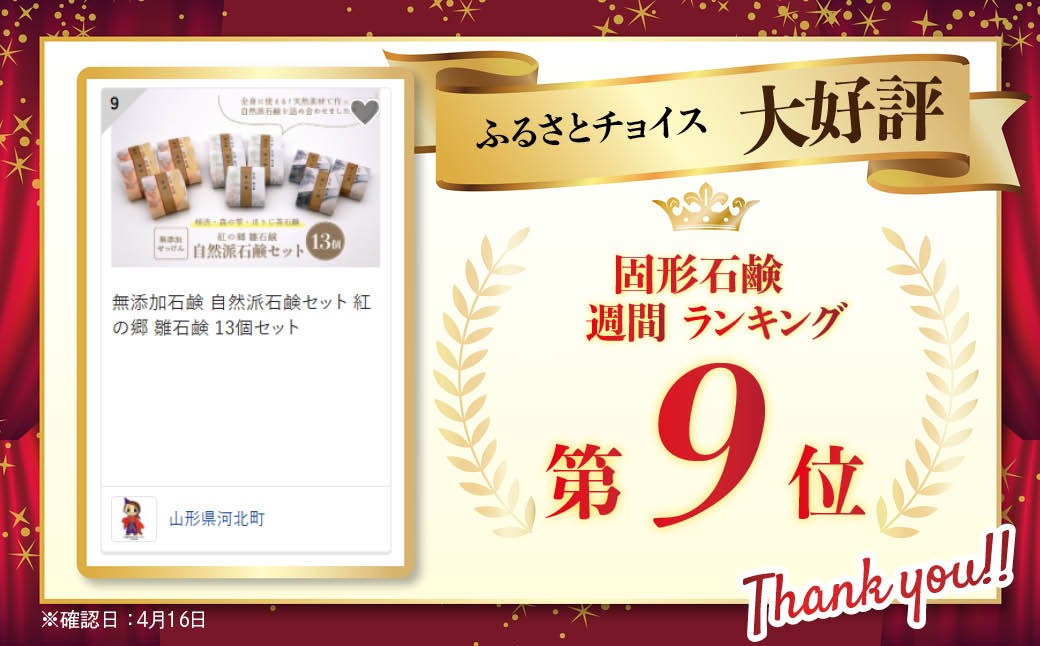 無添加石鹸 自然派石鹸セット 紅の郷 雛石鹸 13個セット