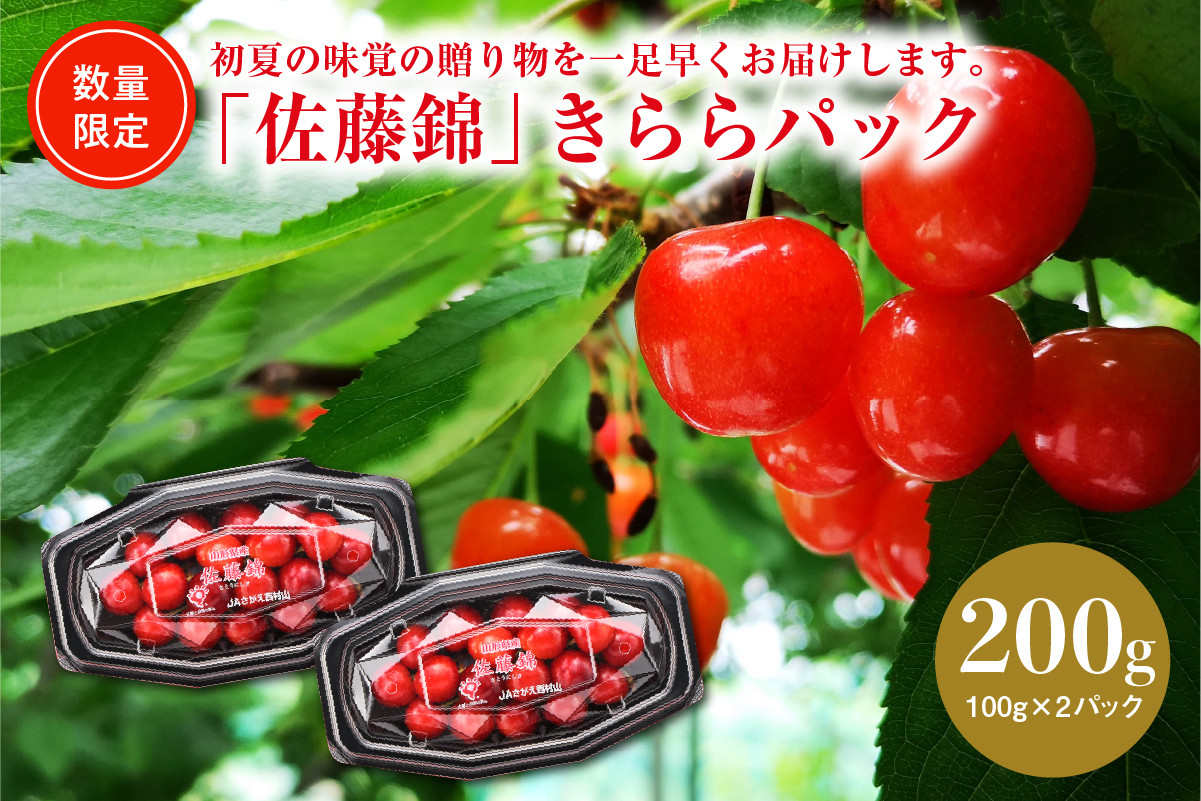 数量限定!初夏の味覚の贈り物を、一足早くお届けします。 【令和8年産】ハウスさくらんぼ「佐藤錦」きららパック200g(100g×2) 山形県河北町産【JAさがえ西村山】 ka008-006e-r8