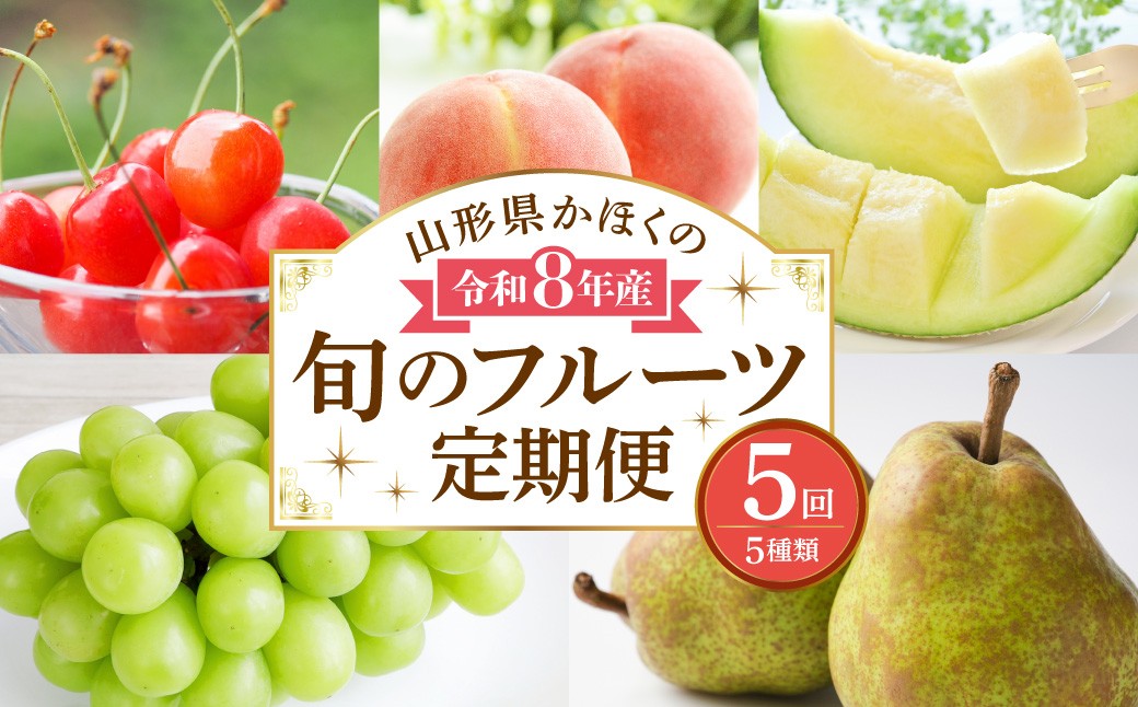 山形の自然豊かな気候で育った厳選フルーツをお届けします! 【計5回お届け】令和8年産 山形県かほくの旬のフルーツ定期便【かほくらし社】 ka019-003e-r8