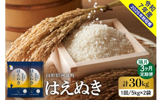 【令和7年産米】※選べる配送時期※ はえぬき30kg(10kg×3回)隔月定期便 山形県産 【米comeかほく協同組合】
