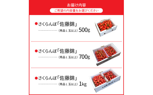 選べる内容量!【2026年産先行予約】さくらんぼ佐藤錦 秀L 1kg/…