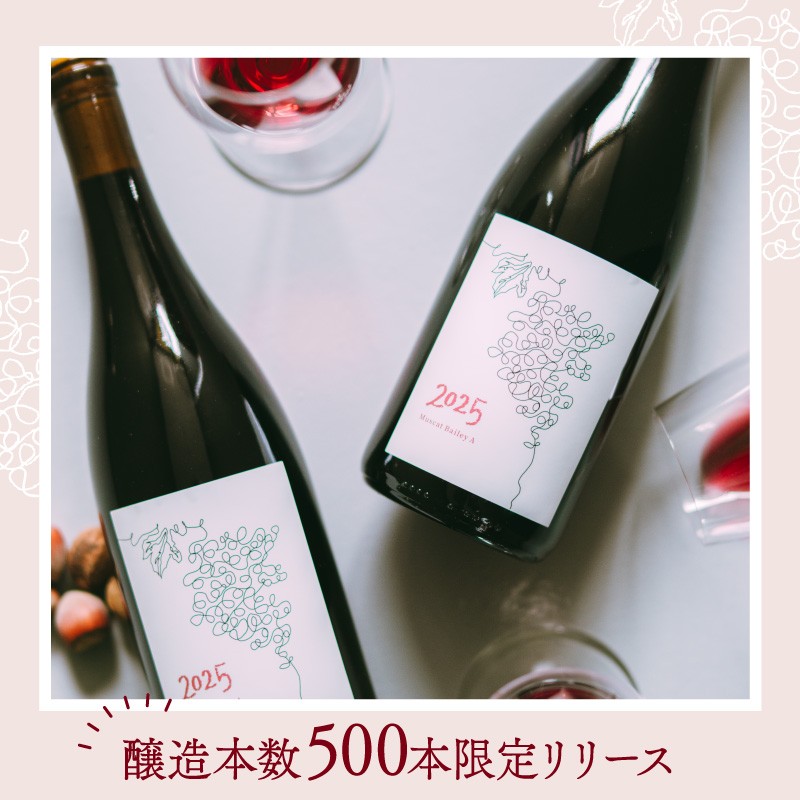 シリーズ初の赤ワイン『Muscat Bailey A 2025』。香りはイチゴやプラム、赤いリンゴのような果実味が立ち上がり、次第に紅茶を思わせるほのかな香ばしさが顔を出します。