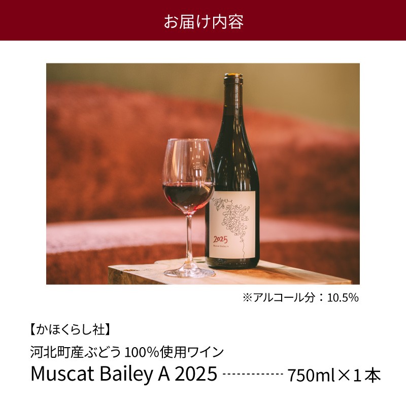 【河北町産ぶどう100%使用】Muscat Bailey A 2025(750ml×1本)【かほくらし社】 ka019-318j-2025