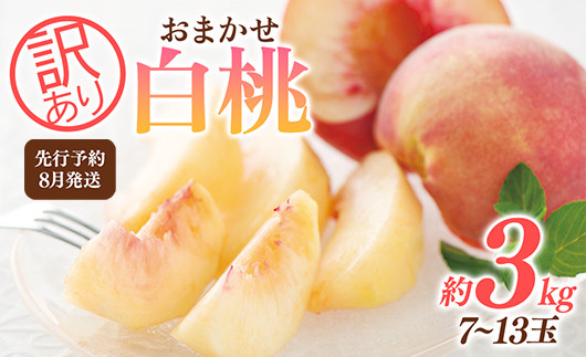 地域の生産者応援の品 FYN9-731 ≪2026年先行予約≫ ご家庭用 8月発送 山形県産 品種おまかせ 白桃 約3kg(7~13玉) 2026年8月上旬から順次発送 はくとう 桃 もも モモ 果物 くだもの 夏果実 フルーツ 訳あり 農業者支援 家庭用 自宅用 産地直送 山形県 西川町 月山