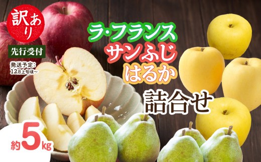 《先行受付》訳あり「ラフランス」「サンふじ」「はるか」約5kg…