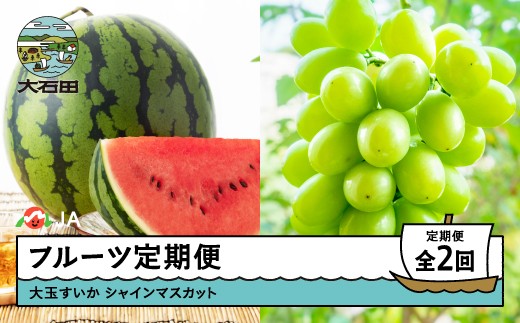 定期便 全2回 令和八年産 2026年産 【先行予約】フルーツ定期便 全2回 大玉すいか シャインマスカット ja-ft2ss