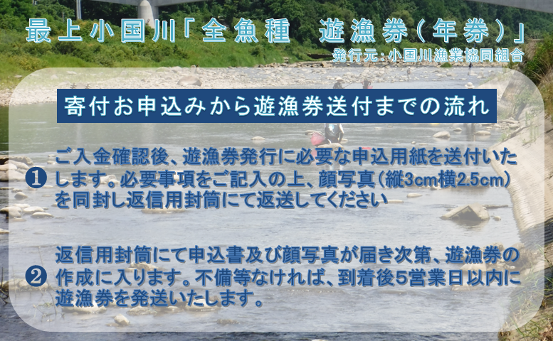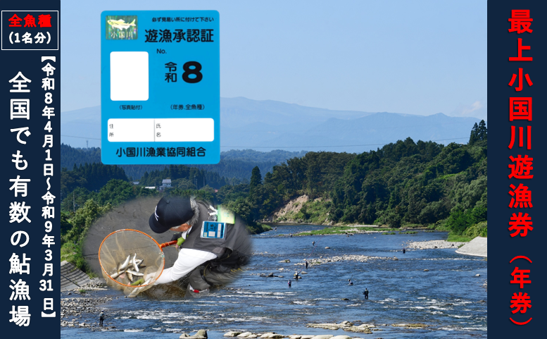 | 容量 | 最上小国川 全魚種 遊漁券(年券)1枚 |