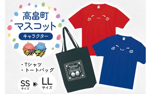 高畠町のマスコットキャラクター「たかっき」「はたっき」のTシャツ2枚とトートバッグのセットです。