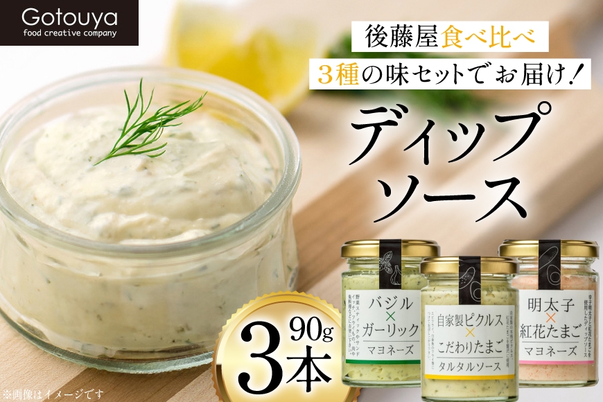 3種類の味をセットでお届け! ディップソース ディップソース 90g 3種 3本 [後藤屋 山形県 高畠町 tk06ays690007] 個包装 バジル 明太子 タルタルソース