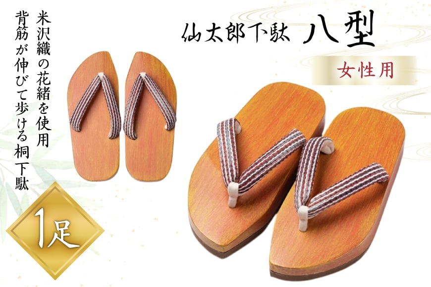 米沢織の花緒を使用した背筋が伸びて歩ける桐下駄です 下駄 仙太郎下駄 八型 (女性用) 1足 [仙太郎下駄工房 山形県 高畠町 tk06ays790001] 靴 下駄 げた ゲタ シューズ レディース