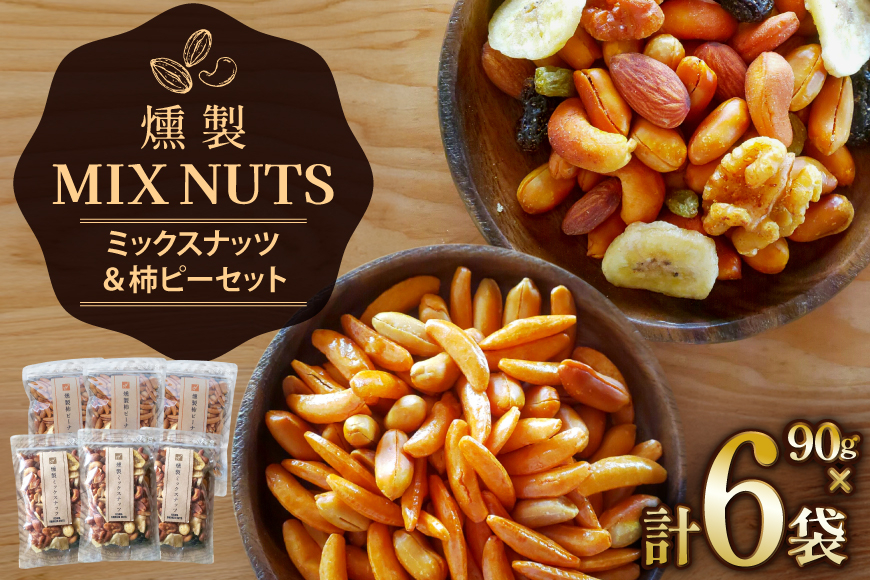 しっかりとした燻製香♪やみつきになる美味しさ 詰め合わせ 燻製 ミックスナッツ と 燻製 柿ピーナッツ 各3袋 計6袋 [伊澤商店 山形県 高畠町 tk06bcz260000] セット ナッツ ピーナッツ 柿ピー 小分け 個包装 スモーク 手作り アーモンド カシューナッツ レーズン バナナチップ おつまみ お菓子 おやつ