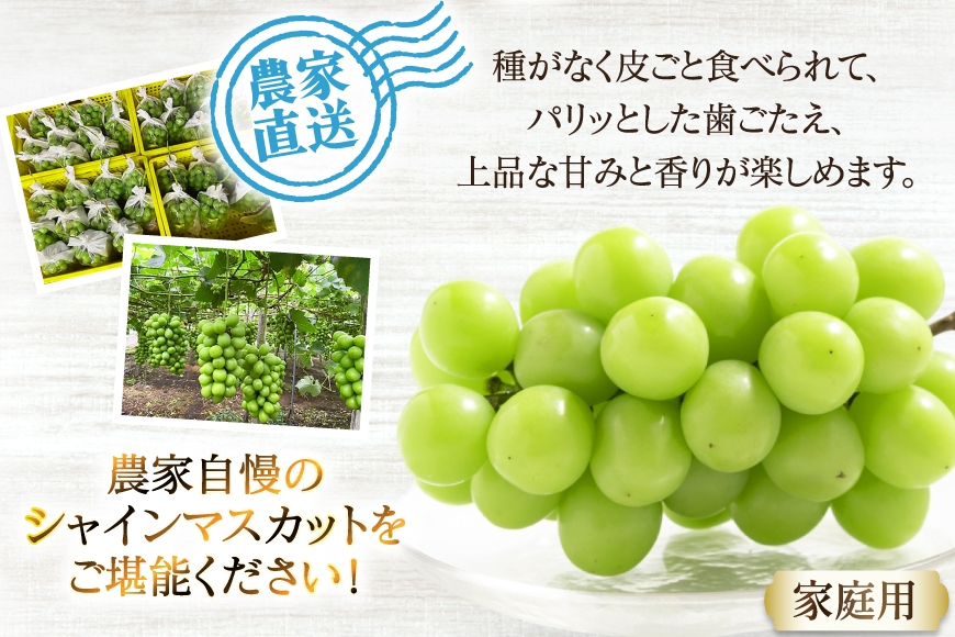 地域の生産者応援の品 寒暖差が育てた、弾ける甘み 【期間限定発送】 ぶどう 家庭用 訳あり シャインマスカット 約1.5kg 1箱 [治右衛門果樹園 山形県 高畠町 tk06ays830025] ブドウ 葡萄 フルーツ 果物 くだもの デザート 甘い シャイン マスカット 1.5キロ 産地直送 農家直送 期間限定