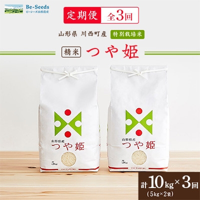 <毎月定期便>山形県産特別栽培米「つや姫」10kg(5kg×2袋)全3回【4076722】