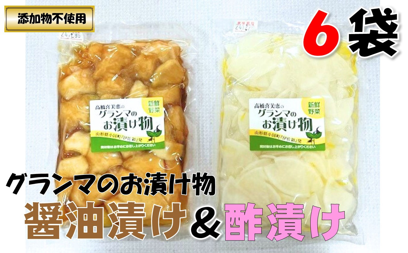 添加物不使用で安心安全な2種類のお漬物セット グランマのお漬物(酢漬け・醤油漬け各200g×3袋)計6袋
