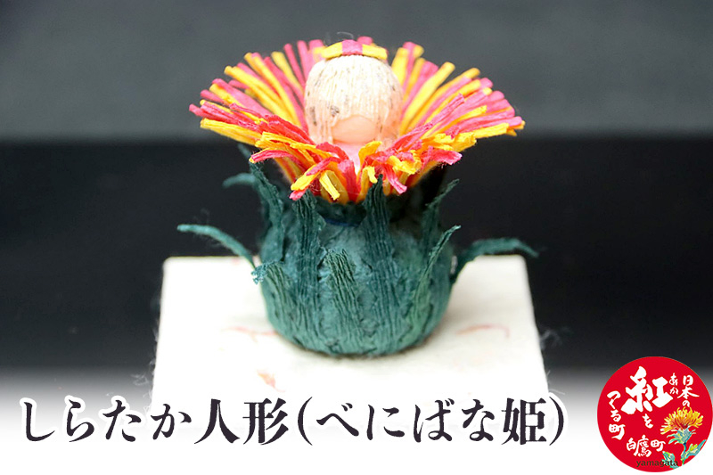 「べにばな姫」は、この町内の紅花をイメージして、伝統ある深山和紙で丁寧に仕上げております。