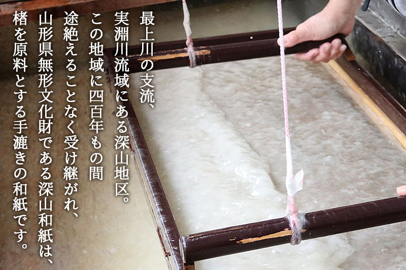 山形県無形文化財である深山和紙は、楮を原料とする手漉きの和紙です。