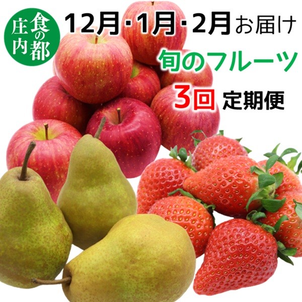 食の都庄内 《12月・1月・2月お届け》旬のフルーツ3ヶ月定期便42,500 円 ☆冬のフルーツ定期便!3ヵ月お届け☆ 【令和7年12月 令和8年1月・2月お届け】 《12月》葉とらずリンゴ(ふじ、陽光 他) 《1月》洋梨(シルバーベル) 《2月》いちご(やよい姫 他) 食の都庄内は四季折々に美味しいものがたくさんございます。 庄内の旬の果実を3ヶ月連続でお届けいたします。食卓が盛り上がること間違いなしの定期便です。 ※誠に申し訳ございませんが、沖縄および離島への配送はお受けできません。 ※フルーツの発送には十分に配慮しておりますが、運搬中に傷や潰れが発生する可能性があります。お気づきの点がありましたら、状態を撮影したうえで三川町ふるさと応援寄附金までお問合せをお願いいたします。 ※天候により配送時期が変更になる場合もあります。 ※天候不順や生育不良等により配送が困難となった場合は、代替品等に振り替えてのご対応となる場合がございます。予めご了承ください。 ※事前連絡をいただいていない長期不在や転居等、寄附者様のご都合によりお届けが出来ない場合は、返礼品の再送はいたしませんので、予めご了承くださいますようお願いいたします。 【返礼品発送のお知らせメールについて】 こちらの返礼品は、ヤマト運輸でのお届けとなります。 配送前の事前連絡は行っておりませんが、返礼品の出荷が完了しましたら《出荷通知メール》が自動送信されます。 申し込みの際にご登録いただいたメールアドレスに自動送信されます。 <食の都庄内とは?> 庄内地域は、四方を山と海に囲まれ、その地形と気候が地域の土地や海に恵みを与えています。このため、庄内は四季を通しておいしい食材の宝庫であり、豊かな食文化が育まれてきました。 まさに食の理想郷、「食の都庄内」の魅力を多くの皆様から実感していただき、内外に発信していくことで、地域の農林水産業はもちろん、食に携わる全ての人たちが元気になることを目指して、山形県と庄内2市3町(鶴岡市、酒田市、遊佐町、庄内町、三川町)が一緒に取り組んでいます。 - 常温便