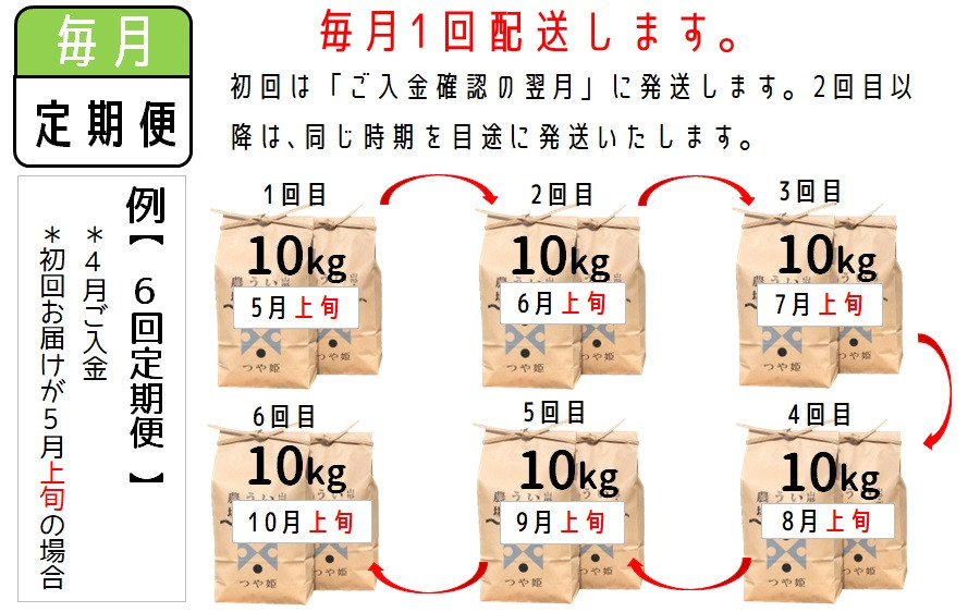 【毎月】ご入金の翌月より毎月1回、6ヵ月連続してお届けいたします。