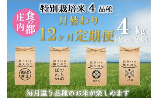 食の都庄内 【定期便12回】特別栽培米4品種月替わり12ヶ月定期…