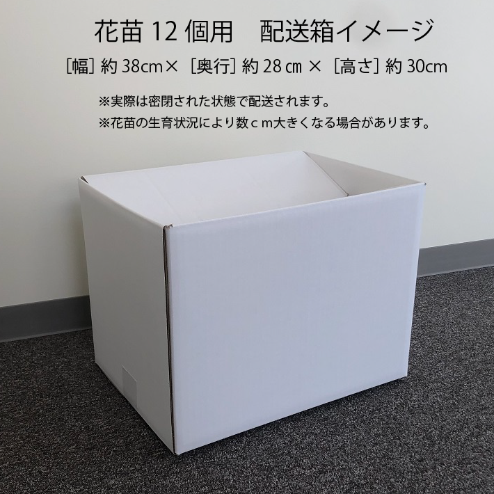 | 容量 | 生産者おまかせ 12ポット (マリーゴールド・ベゴニア・メランポジュウム) ※花の種類・数・色の指定はできません。 |