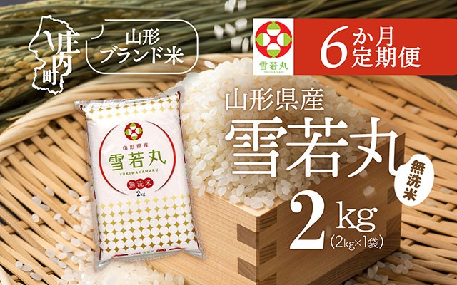 6か月間毎月中旬に山形県産雪若丸無洗米2kgをお届けします。
