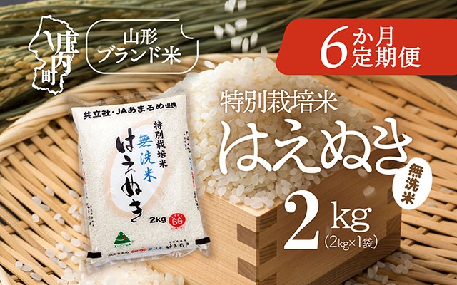 さっぱりとした食感のお米「はえぬき」無洗米を6か月間お届け 【6か月定期便】庄内米 特別栽培米 はえぬき 無洗米 2kg 毎月 2kg×1袋 令和7年産 / 令和8年産 ブランド米 米 山形 庄内平野 コシヒカリの原点、亀の尾発祥の地 庄内 お米の定期便【6月中旬発送/入金期限:2026年5月25日】