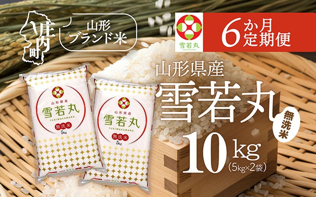 6か月間毎月中旬に山形県産雪若丸無洗米5kg×2袋をお届けします。