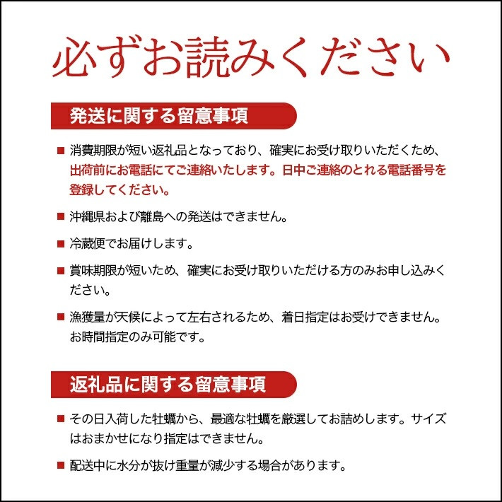 ・漁獲量が天候によって左右されるため、着日指定はお受けできません。お時間指定のみ可能です。