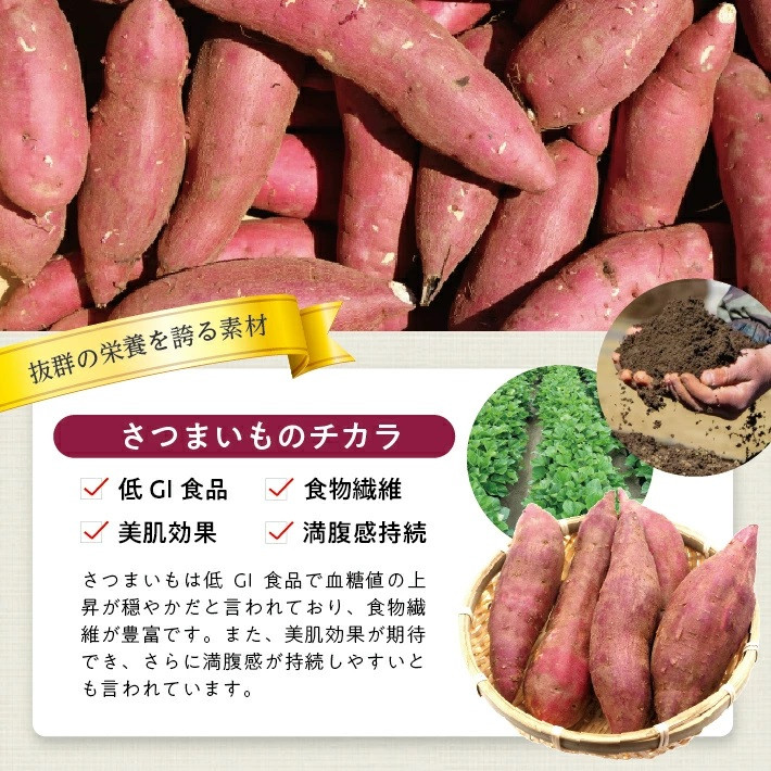 遊佐産のさつまいも「紅はるか」は食物繊維やビタミンCを多く含み、加熱してもビタミンCが壊れにくい特性があると言われています。