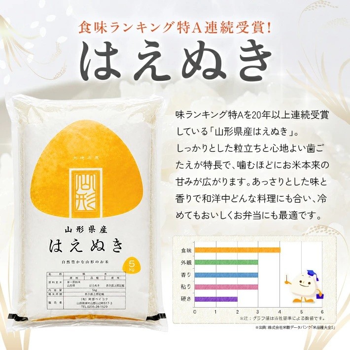 食味ランキング特Aを20年以上連続受賞しているのは「山形県産はえぬき」と他1品種だけなんです!