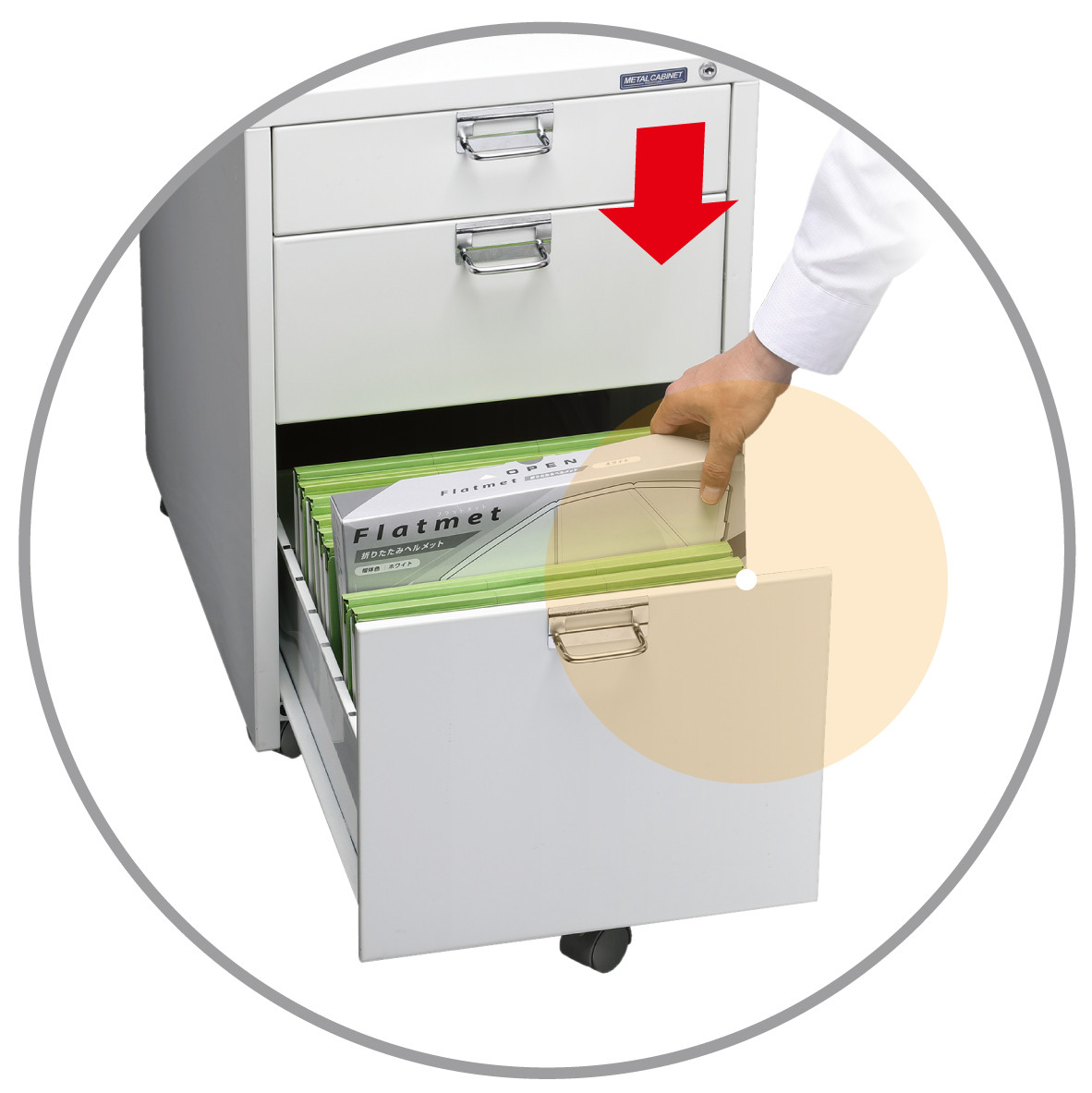 もしものために、必要な数量を省スペースで備蓄できるよう、設計に工夫を重ねて薄さを追求。