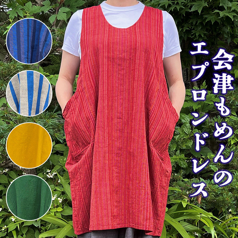 会津もめんのエプロンドレス 全5色|會津 木綿 エプロン 前掛け…