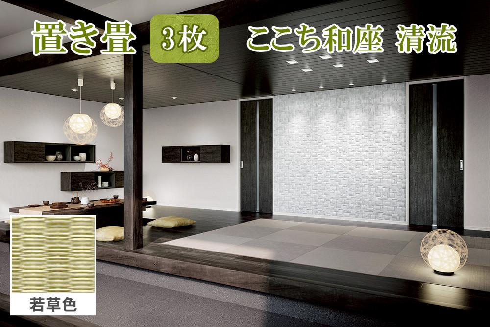 ここち和座 清流 3枚入り 若草色|敷物 畳 ラグ たたみ 敷き物 [0744]
