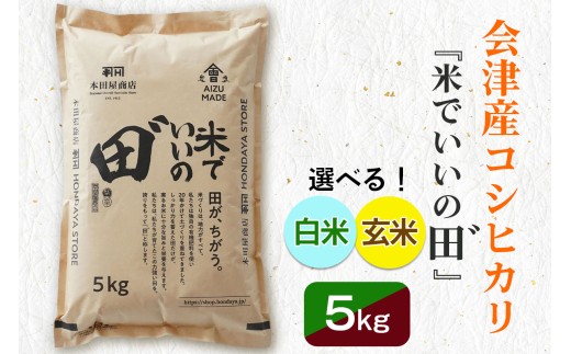 米つくりは、地力がすべて 令和7年産 会津産コシヒカリ 米でいいの田゛《選べる種類:玄米/白米》5kg|令和7年 2025年 会津産 米 お米 こめ コメ 玄米 精米 こしひかり 新米 [1093-1095]