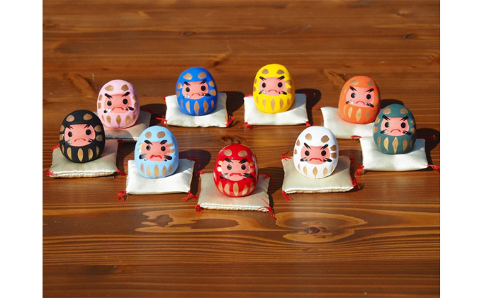 高柴だるまが、片手に乗る豆サイズになりました!9色の豆だるまにはそれぞれ願掛けの意味があるので、その時々の状況に合わせて運頼みをしてください。
