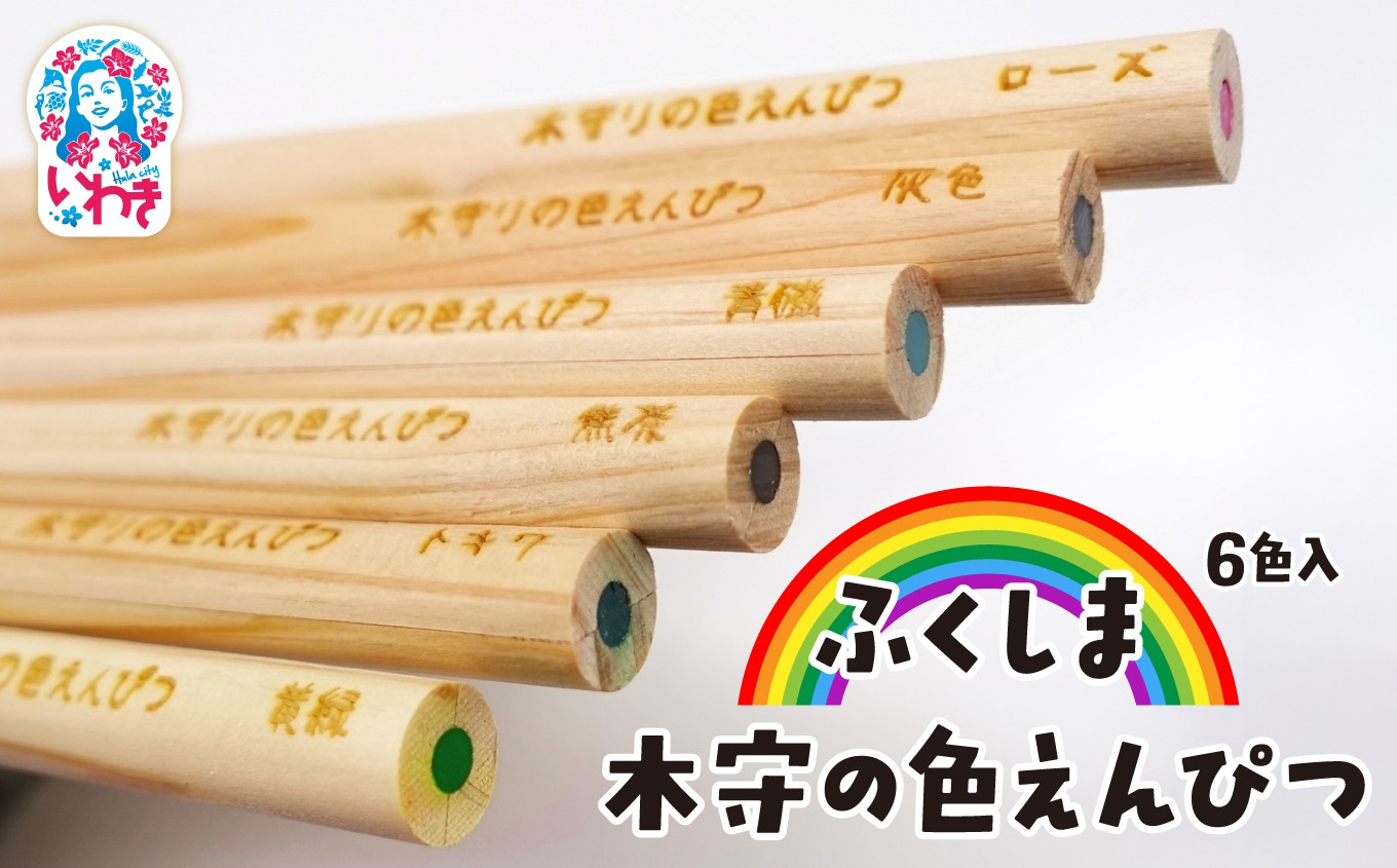 軸材にいわき市産ヒノキ間伐材を使用した、非常に珍しい純国産色鉛筆。 ふくしま 木守の色えんぴつ 6色入| 福島 木守の色えんぴつ 木製 色鉛筆 セット 日本製 天然木 ギフト プレゼント おしゃれ 高級 文房具 アート 画材 子供 大人 イラスト | DF009
