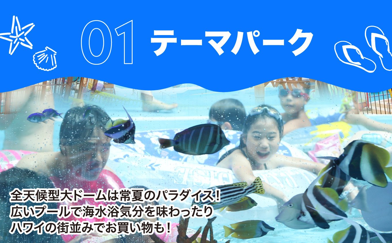 フラやファイヤーナイフダンスなどの華やかなショーも楽しめ、子どもから大人まで一日では足りないはず。