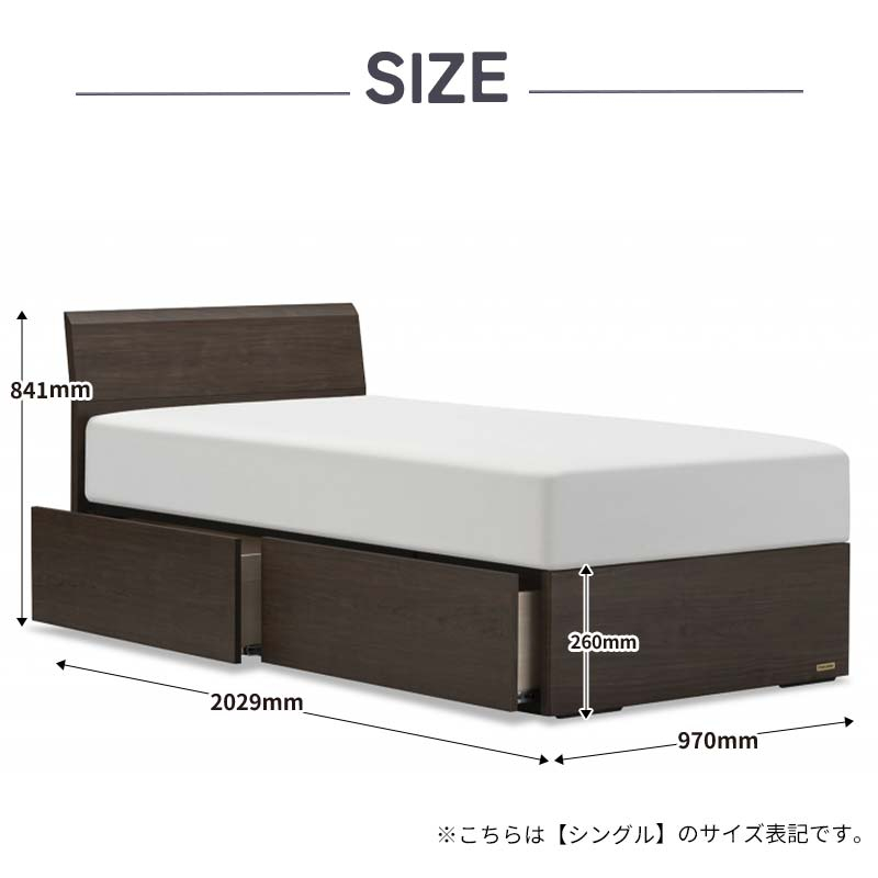 | 容量 | 【ベッドフレーム】ファディアF2(引出付タイプ) シングル 1台 【マットレス】高密度連続スプリングマットレス(ミディアムソフト(TW-200)/ハード(MH-200))シングル 1枚 フレームカラー:ナチュラル(KNA)/グレー(KGY)/ウォールナット(KWN) 保証期間:フレーム 1年/マットレス 2年 フレームサイズ:幅970×長さ2029×高さ841×高さ260mm マットレス:幅970×長さ1950×高さ260mm 【フレーム材質】 主板:化粧紙、床板:スノコ床板 (ベッドフレームの表面は、抗菌仕様で衛生的にも安心してお使いいただけます。) 【マットレス仕様】 スプリング:高密度連続スプリング ダブルニット生地、防ダニ・防菌防臭加工 |