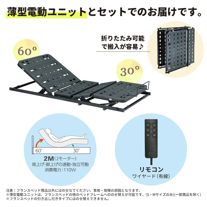 フランスベッドの他ベッドフレームヘの載せ替えが可能です。( S-M サイズのみ)