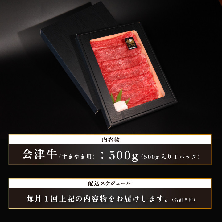 歴史と伝統が息づく極上の逸品、会津牛 牛肉 すき焼き 500g 定期便6か月 計3,000g 会津喜多方産 黒毛和牛 会津牛 ギフト お土産【07208-0299-C】