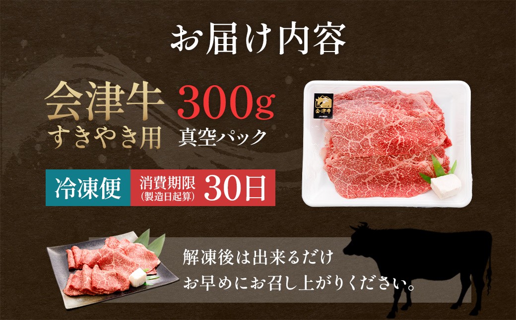 歴史と伝統が息づく極上の逸品、会津牛 牛肉 すき焼き用 300g 会津喜多方産 黒毛和牛 会津牛 ギフト【07208-0876】