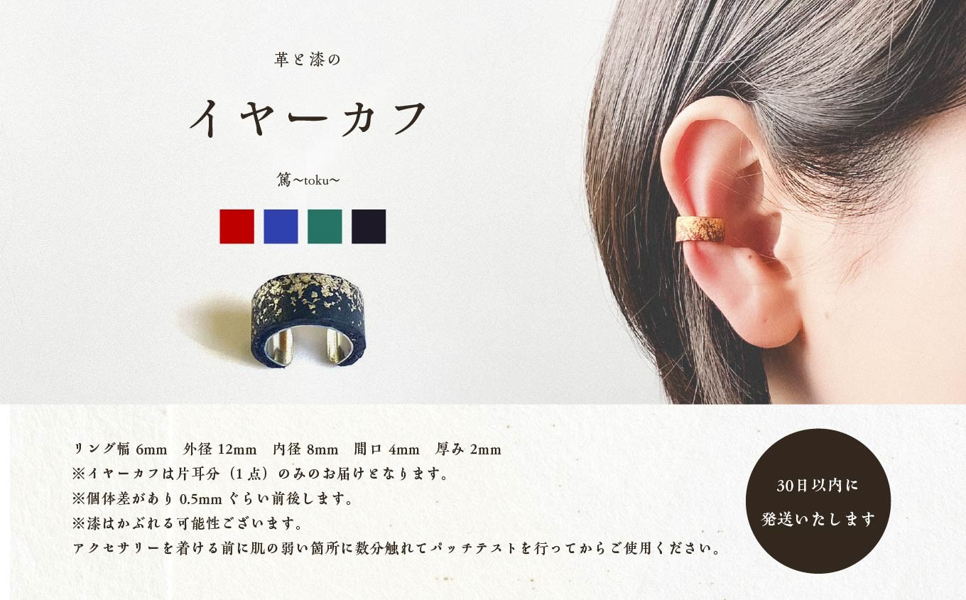 革と黒漆のイヤーカフ 革と漆のイヤーカフ 伝統工芸 アクセサリー 革 漆 おしゃれ 軽量 ファッション 工芸品 おすすめ お中元 お歳暮 ギフト 二本松市 ふくしま 福島県 送料無料【神楽工房はしもと】