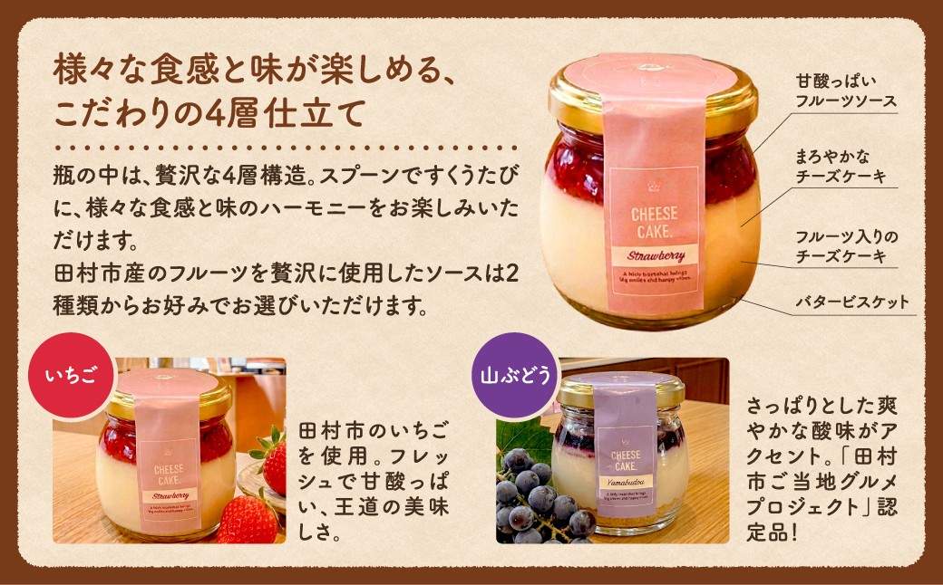 様々な食感と味が楽しめる、こだわりの4層仕立て レアチーズケーキ 6個入り いちご 山ぶどう 冷凍 お菓子 スイーツ デザート チーズケーキ ケーキ おしゃれ 小瓶 記念日 誕生日 プレゼント 母の日 父の日 お祝い お返し お土産 手土産 田村市 福島県 みやこじスイーツゆい