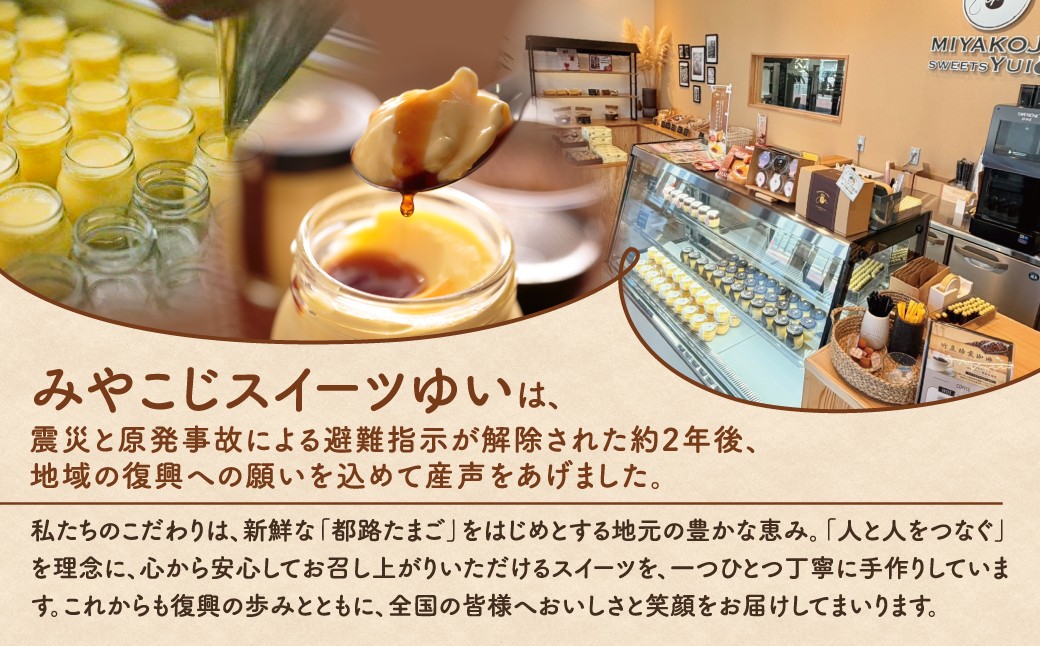 ”みやこじスイーツゆい”では地元生産者さまのご協力のもと新鮮たまごやえごまなど素材にこだわって、「安全で体にやさしい」スイーツづくりをしています。