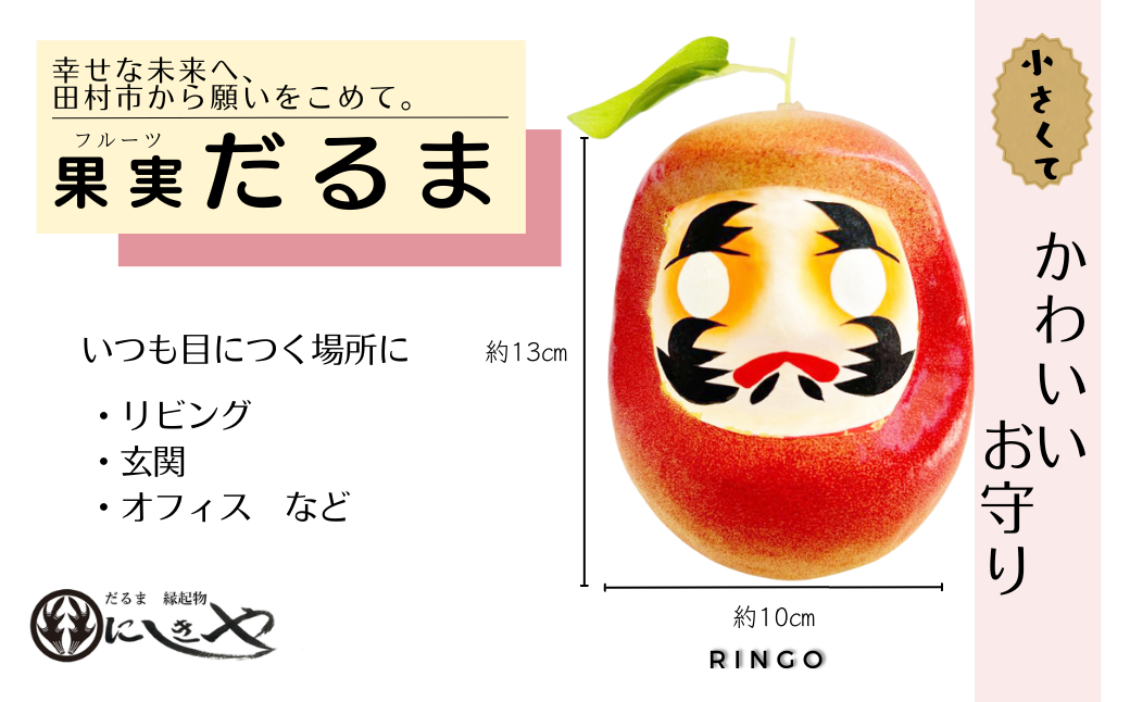 幸せな未来へ向け、田村市から願いをこめて。 「フルーツだるま」 りんご だるま 縁起物 ギフト お祝い 祝福 インテリア 手乗りダルマ プレゼント かわいい 願い 暮らし 癒し インテリア 日本製 伝統工芸品 贈り物 開運 置物 グッズ 干支の置物福島県 田村市 錦屋
